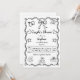 Esquiador blanco y negro dibujado a mano garabato de la llamativa ducha de boda de estilo retro francés Invitación. Anunciar la ducha de tu pareja con una invitación tan única como tu historia de amor. El diseño se caracteriza por una estética particular, a mano, con líneas de acequia en blanco y negro y doodles caprichosos que recuerdan el arte retro francés. En el diseño se han incorporado ilustraciones lúdicos, como corazones, un anillo boda y un arco encantador. Un tipo de letra manuscrito y un marco único y ondulado para hacer frente a la pasión artística hacen de esta invitación un lugar memorable y muy apreciado para sus huéspedes.
