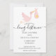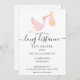 Ducha de larga distancia | Espolvorear por correo Invitación con una linda cigüeña rosa con una entrega muy especial. Esta elegante ducha de bebé, rociada o ducha de pareja por invitación del correo es perfecta para todas las niñas que están en camino. Añade la información especial de tu evento en un texto moderno. Diseñado por Thisisnotme©