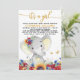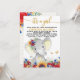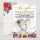 Invitaciones para baby shower de girasoles con un adorable elefante bebé con hermosa rosa roja flor silvestre y fondo de girasoles con mariposas. Esta invitación de baby shower de girasoles se personaliza fácilmente con los detalles de su evento.