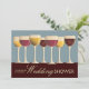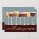 Las hermosas lentes de vino hechas a mano en una variedad de vinos rojos y blancos esperan la degustación en este diseño que es perfecto para una ducha de matrimonio con temática de vino. Los vasos de vino están delicadamente sombreados y descansan sobre un elegante fondo de acero azul. Este diseño, que se ofrece aquí en el material básico de papel, también se vería especialmente maravilloso en lino o fieltro. También hay disponibles sellos de correos de coordinación.