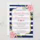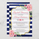 Invitación Ducha de novia acuarela Floral Navío franjas azule