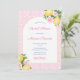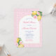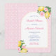 Este diseño de invitación de ducha de boda moderna cuenta con una forma de arco de moda y limones, con toques florales rosados sobre una impresión de fondo rosa y blanco hecha a partir de una baldosa vintage. Se muestra aquí para una ducha de novia, pero todo el texto se puede personalizar según tus necesidades.
