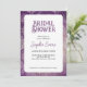 Disfrute de la celebración de su ducha de novia con nuestra Invitación a la ducha de novia Vintage Purple y Silver Damask, una impresionante mezcla de sofisticación y encanto. Esta exquisita invitación, presentada en blanco inmaculado, está adornada con un lujoso borde Damasco en tonos ruidosos de morado y plata, lo que crea una fascinante experiencia visual que prepara el terreno para una aventura elegante. El intrincado patrón de Damasco, que recuerda a tapices opulentos de una época pasada, honra los bordes de la invitación en una rica mezcla de tonos morados y plateados. Esta elección clásica de diseño simboliza la realeza, nobleza y belleza intemporal, lo que la convierte en la elección perfecta para una ducha nupcial que exuda gracia y sofisticación. Al cursar la invitación, la parte trasera está decorada con la misma decoración de Damasco. Este cuidado detalle garantiza una presentación impecable y elegante, que cautiva a sus huéspedes desde todos los ángulos. La continuación del patrón de Damask al fondo de la invitación añade un toque de grandeza, creando un sentido de unidad y armonía en el diseño. Esta Invitación a la ducha de novia malva y plateada es más que una invitación; es una obra de arte que habla mucho de tu gusto y estilo. La combinación de blanco, púrpura y plata crea un equilibrio armonioso que evoca una sensación de belleza real y elegancia refinada. Invita a sus huéspedes a entrar en un mundo de grandeza vintage y a celebrar la unión de dos corazones en un entorno que exuda sofisticación y encanto intemporal. Invite a sus huéspedes a una ducha nupcial que resuena con la elegancia de una época pasada. Con esta invitación, no sólo estás extendiendo una invitación; estás ofreciendo un vistazo a un mundo de opulencia vintage y romance duradero, prometiendo un evento lleno de gracia, amor y recuerdos preciados.