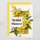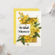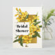 Invitación a la ducha de boda con dos caras de la primavera floral de jazmín amarillo vintage. Un hermoso diseño floral que muestra un cuadro vintage de una rama jazmín amarilla con una nota fija que contiene el texto "Ducha de novia" en la parte delantera mientras tu texto se coloca en la parte posterior de un marco blanco opaco con un borde amarillo.