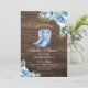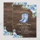 ducha de novia botas vaqueras azules florales rústicas de madera occidental Invitación