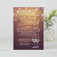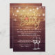 Ducha de novia / Boda Celebración Plantillas de tarjeta de invitación - Elegante escritura de Relieve metalizado dorado Faux Brunch & Bubbly Lettering, Vintage Champagne Glasses y String Lights on Rustic Wood Background. Un diseño perfecto para tu gran día. ¡Todo el estilo de texto, colores, tamaños se pueden modificar para adaptarlo a sus necesidades!