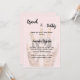 Una invitación moderna, elegante y glamurosa para un brunch Bubbly Bridal Shower. Un suave fondo rosa, decorado con una cesta con flautas y frascos de vino espumoso. El nombre está escrito con una escritura de estilo con letras a mano moderna. Personalice y agregue los detalles de su fiesta.