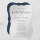 Elegante invitación a ducha de novia azul marino y plata con un moderno tipo de letra de guión. Elementos coincidentes disponibles.