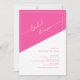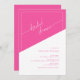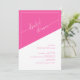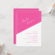 Invite a sus huéspedes a celebrar con estilo utilizando nuestra invitación a la ducha con guión geométrico negrita. Este diseño moderno y elegante presenta un llamativo fondo geométrico en tonos rosa y blanco, creando un ambiente vibrante y elegante. La frase "ducha de novia" se muestra en un sofisticado guión blanco sobre un fondo rosa diagonal negrita, que complementa perfectamente el tema geométrico. Personalice su invitación con facilidad: personalizar el nombre, la fecha, el lugar y los detalles del RSVP dentro de una línea de borde de marco blanco de moda. El texto se presenta en una combinación de tipografía rosada sans serif y serif en un fondo blanco diagonal negrita, mejorando la legibilidad y el atractivo visual. Este exclusivo diseño combina el estilo contemporáneo con toques elegantes, lo que lo convierte en la elección perfecta para una inolvidable ducha de matrimonio.