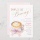 Celebra a la futura novia con esta encantadora invitación a la ducha de novias. Con una taza de café acuarela coronada con arte de café con leche y un delicado arco rosado, este diseño es perfecto para los amantes del café. Una decoración dulce y acogedora que da la tónica a una ducha de matrimonio elegante y moderna.