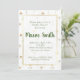 La combinación perfecta de femenino y moderno se encuentra en esta invitación de flores silvestres con marco dorado. Pequeñas y delicadas flores silvestres similares a margaritas rodean un marco dorado para un aspecto caprichoso y vintage que lo hace perfecto para su próximo evento. Los marcos dorados crean el borde perfecto para el texto en color verde hiedra cursivo y tradicional. El resultado final es un aspecto lindo y primaveral que es perfecto para aquellos que buscan el sentimiento fresco y soleado de la primavera capturado en una invitación. ¡Esta invitación es imprescindible para su próximo baby shower, desfile de novia o fiesta de bodas!