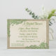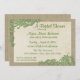 Diseño de encaje de inspiración vintage en verde sobre burlap. Invitación a la ducha de novia. Personalice el texto como prefiera.