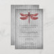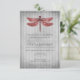 Crea una invitación única a todos los tuyos con una invitación a la ducha de novias con libélula. El diseño de la invitación presenta una libélula de guijarros con vigas en el fondo de una vintage rayada. Personalice el nombre de la novia junto con los detalles de la ducha de novia. También hay material de boda adicional disponible con este diseño.