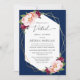 Incluso cuando no puedes reunirte en persona, todavía puedes conocerte virtualmente. Aquí hay una elección elegante para su próxima ducha de novia. Este diseño presenta adorables peonías rosadas y capullos de rosa burdeos junto con los detalles de la ducha de personalizable nupcial rodeados por un marco geométrico de Relieve metalizado dorado a la moda sobre un elegante fondo azul marino. La parte trasera de la tarjeta también es azul marino. Consulte la suite boda completa para otros productos que llevan este diseño. Si tiene alguna pregunta de diseño o desea ver este diseño en otro producto, por favor no dude en contactarme en jschmidtdesignworks@gmail.com. Diseño © Judith Schmidt.