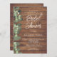 Invitación Ducha de novia de madera rústica verde eucalipto
