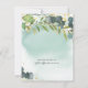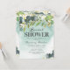 Invitaciones modernas para ducha de novia con un lavado de acuarela verde azulado polvoriento, hojas botánicas verdes elegantes, salpicaduras de lámina de oro falsa y una plantilla simple para fiesta de ducha de novia que es fácil de personalizar.