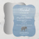Invitación Ducha de Novia Elefante Azul Polvo y Plata. Elegante, moderna, adorable.