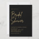 Invite a los huéspedes a celebrar a la novia con estas invitaciones modernas y mínimas a la ducha de novias en blanco y negro clásico. El diseño sencillo incluye "ducha de novia" en escritura manual informal, con los detalles de tu evento debajo de las letras negras de ceniza suave.
