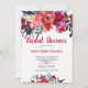 Invitación Ducha de novia floral azul marino rojo bohemia
