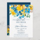 Un elegante, rústico primavera y verano girasoles amarillos, rosas azules y verdes hojas de color agua floral ducha de novia con y elegante fuente de pincel de guión. ¡Perfecto para una novia elegante y jovencita!