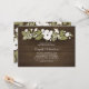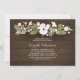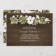 Invitación rústica vintage a la ducha de novias con peonías, flores de madera de perro acompañan anémonas en un ramo estilo jardín. Bonita textura de fondo de madera antigua. Ideal para una rústica ducha de matrimonio. Llenos de flores blancas invitan al revés.