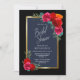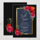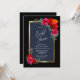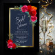 Una elegante invitación a la ducha de novias con flores rojas y con bordes dorados.