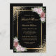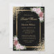 Invitación Ducha de novia floral rosa de Rubor negra y dorada