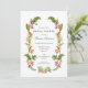 Invitación de ducha de novia tropical elegante pintada a mano con acuarela enmarcada por un delicado arreglo de exuberante vegetación tropical colorida y flores rosadas y naranjas.