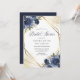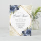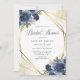 Invitación de ducha de novia geométrica floral azul marino dorado. Hermosas invitaciones elegantes de ducha de novia de invierno con rosas botánicas azules. Este diseño moderno personalizado se puede personalizar fácilmente con los detalles de su ducha.