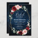La elegante y moderna tarjeta de invitación a la ducha con boda de novia geométrica floral y romántica, presenta un ramo de burdeos / marsala, rosas de color rosa y melocotón con un follaje a juego sobre el fondo rústico de madera azul marino. Perfecto para un boda de otoño/verano medio. Encontrará más diseños y variaciones de mi tienda "blissweddingpaperie". Y no dudes en ponerte en contacto conmigo para seguir personalizando o coincidiendo con elementos