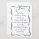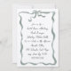 Invite a los huéspedes a celebrar a la novia con hermosas invitaciones a la ducha de novias basadas en tipografía, con letras cursivas de estilo manuscrito acentuadas con un borde de lazo de color agua en verde suave natural. Personalice con la información del registro de la novia, incluido un código QR personalizado, en la parte posterior. Estas elegantes invitaciones tienen un dulce toque artesanal y se ven especialmente hermosas en el papel de Felt Ecru en textura.