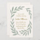 Este elegante diseño de ducha de matrimonio presenta ramas botánicas de color verde sabio que enmarcan el texto en un diseño minimalista. La escritura a mano y el fondo crema son perfectos para fiestas de jardín, duchas de bodega o eventos de inspiración natural. Una mirada atemporal y tranquila para cualquier celebración moderna.