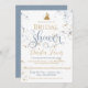 Invitación Ducha de novia oro purpurina_polvoriento azul
