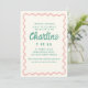 Invitación a la ducha de la escritura a mano rosa y verde ondulada retro