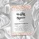 Un fondo con apariencia plateada falsa. Decorado con brillo falso de rosa dorado. Personaliza y agrega un nombre y detalles de la fiesta. El nombre está escrito con un estilo de letra a mano