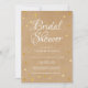 Diseñada para coordinar con nuestra colección de ducha de confeti de novia corazones dorados. Con elegante encabezado de ducha de novia en letra script, corazones dorados dispersos alrededor de tus detalles personalizados en texto blanco sobre un fondo rústico kraft en esta invitación chic de ducha de novia. El reverso presenta corazones dorados adicionales dispersos en un fondo rústico kraft.