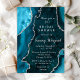 Invitación Ducha de novia verde azulada de mármol azul y plat