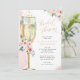 Invitación Ducha de novias con champán rosa y dorada floral