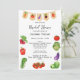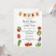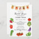 Invitación a ducha de novias en el mercado de granjeros con código QR - Una linda y divertida invitación a una ducha de novias con tema en el mercado de un granjero o a un brunch de novias fuera del mercado. Con ilustraciones acuáticos de verduras frescas incluyendo tomates, lechuga, col, pimientos y rábanos rojos y verdes. Con una bonita pancarta de verduras encima. Escrito en letra manuscrita y guión. Edite esta plantilla de invitación a ducha de novia con sus propios detalles de evento. En la parte posterior, edite el código QR con el sitio web del registro del boda. También disponible como descarga digital instantánea, perfecta para enviarla a través de texto, correo electrónico o medios sociales.