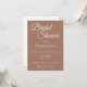 Estilo sencillo, invitación a la ducha de novias que cuenta con un fondo de color marrón mocha moderno junto con el nombre de la futura novia y la hora y ubicación del evento fiesta, contacto, etc., impreso con letras blancas y estilizadas. Personalice su invitación reemplazando el texto con su propia información sobre la ducha de novia. Seleccione el estilo y la cantidad del papel de invitación.