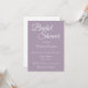Estilo sencillo, invitación a la ducha de novias que cuenta con un fondo de color moderno y malva junto con el nombre de la futura novia y la hora y ubicación del evento fiesta, contacto, etc., impreso con letras blancas y estilizadas. Personalice su invitación reemplazando el texto con su propia información sobre la ducha de novia. Seleccione el estilo y la cantidad del papel de invitación.