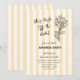 ¡Bienvenidos a los seres queridos a celebrar que una novia esté con esta invitación recién hecha al mercado para la ducha de novias! Con sus rayas de cabaña amarillas y blancas y su ramo de flores, esta invitación es perfecta para los amantes de una estética moderna con un toque femenino. Es el tema perfecto para una ducha de novias en verano, sobre todo si se trata de piscina. Fresco, divertido y simplemente moderno son los grandes descriptores de esta invitación!