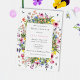 Bohemio, moderno y simplemente perfecto para el verano, esta invitación a la ducha de novias presenta delicadas flores silvestres de colores vivos con mariposas, abejas y albañiles. Puede personalizar de todos los detalles del texto y de la ubicación del gráfico a sus necesidades específicas.