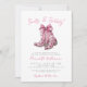 ¡Boots y Bubbly! Invitación a la ducha de novias con botas de Cowboy Girly Pink. Celebra la futura novia con un toque de encanto campestre y un toque femenino. Esta invitación incluye un par de elegantes botas de vaquero rosadas bajo el título, adornadas con un gran arco acuático. Las botas tienen un delicado patrón floral, añadiendo una moda y un giro caprichoso al tema occidental. La frase "Boots & Bubbly" está escrita en una elegante mezcla de caligrafía manuscrita rosada y tipografía serif clásica para un toque divertido y elegante. El título se puede personalizar para que se ajuste a su evento, ya sea que prefiera "Boots & Bling, Before The Ring", "Sip, Sip, Hooray" u otra frase lúdica. Perfecto para las duchas de novios con un tema de campo, rústico o boho, este diseño trabaja de maravilla para celebraciones de granero, reuniones al aire libre o acogedoras reuniones. La parte posterior de la tarjeta presenta un fondo blanco limpio, que se puede personalizar para que coincida con el esquema de color del evento. Personalizable completo, puede ajustar el texto, las fuentes y los colores para reflejar el estilo único de la novia. Disponible como tarjeta impresa o archivo digital descargable, esta encantadora invitación es una manera elegante de establecer el tono para una celebración divertida e inolvidable.