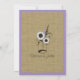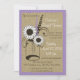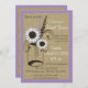 Dulce invitación a la ducha de novias de estilo rústico con un frasco lleno de flores sobre el rústico aspecto de burlap y acentuado en morado con puntos de polka.