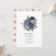 Invitación de boda de flores azul polvoriento, dorado rosa y azul marino elegante con acentos de rosa rubor personalizables para los detalles de su evento.