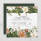 Fondo verde esmeralda moderno y rico de bosque con paleta de colores coral vivo con rosa sonrosado y blanco marfil es romántico y deslumbrante. Coral con un toque de peonías rojas, rosas sonrosadas y clemátides marfil se mezclan con helechos recogidos del bosque y follaje de jardín. Invitación de Bridal Shower con artículos de fiesta de papel para coordinar. Esta obra de arte de acuarela pintada a mano fue creada por la artista Audrey Jeanne Roberts. Derechos de autor.