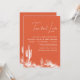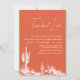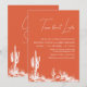 Invitación de ducha de parejas sobre tacos acerca del amor con paisaje occidental moderno en color de puesta de sol de Verona con un desierto occidental blanco y una tipografía de caligrafía moderna de una sola línea.