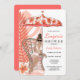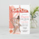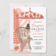 La invitación de la ducha de ropa interior nupcial presenta flores tropicales coral y rosa, paraguas y novia morena por casarse. Disponible con cabello rubio, marrón y rojo y piel clara y oscura.