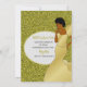 Esta invitación de oro muestra a una mujer afroamericana con un rizo por usar un hermoso vestido. Esta elegante invitación es perfecta para darle una primera impresión.